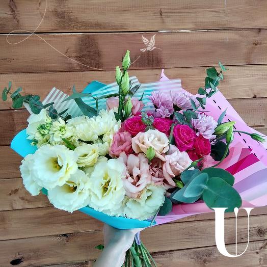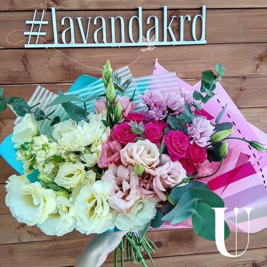 - Эустома - 5 шт. роза кустовая - 3 шт. маттиола - 2 шт. хризантема - 2 шт. зелень - 1 шт. упаковка - 1 шт.Необычно красивый букет сочетает в себе нежность и насыщенность красок. дарите цветы с поводом и без !