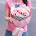 Монобукет из 11 хризантем сорта Балтика Пинк в упаковке