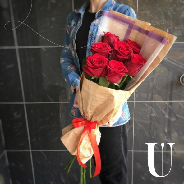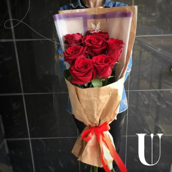 - Роза explorer️ - 7, крафт бумага -2, пленка дизайнерская - 1, атласная лента - 2