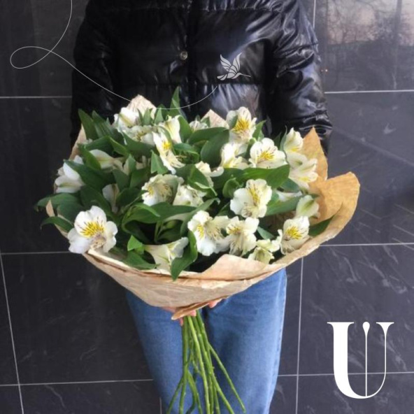 - Альстромерия - 11, крафт дизайнерский - 2, лента атласная - 2