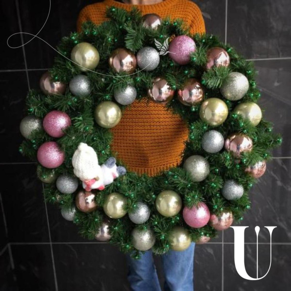 Шар новогодний матовый - 14, шар новогодний глянец - 13, шар новогодний блестки - 13, новогодний декор девочка - 1, новогодний венок ручной работы - 1
