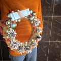 - Ягоды декоративные - 15 шт. шар новогодний - 10 шт. шишки - 8 шт. новогодний венок ручной работы - 1 шт. сезаль - 1 шт. бант - 1 шт