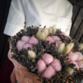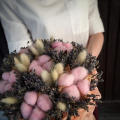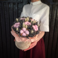 - Лагурус - 14 шт. хлопок - 6 шт. тишью - 2 шт. лаванда пучок - 1 шт. шляпная коробка - 1 шт. Фантастические цветы и волшебные утонченные оттенки